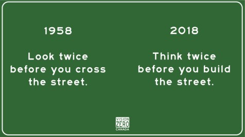First, a little background. Yesterday I was approached by the Saskatoon Star Phoenix, and quoted as expressing my concern that no Canadian city was really grasping what I call the Vision Zero difference: namely, the shift away from the deeply-ingrained shared responsibility road safety paradigm, and towards a “safe systems” approach.