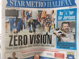 ▶ READ Zane Woodford, Advocate says city’s road-safety plan lacks vision, Star Metro Halifax, 26 June 2018. VZC ED Graham Larkin raises the flag about Halifax’s proposed Strategic Road Safety Plan. The critique began as a Twitter thread, and was continued in the phone interview with Woodford. In the same article Councillor Shawn Clearly attacks the credentials of Larkin, who subsequently invited him to debate the SRSP in public.